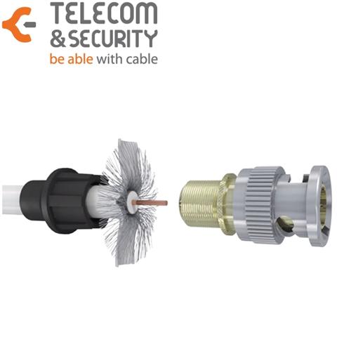 BNC-Systemstecker HQ (High Quality), mit Pressverbinder schwarz zur Schnellmontage (Anlegewerkzeug TS notwendig!). Reflexionsdämpfung: >30 dB bei 3 GHz, unterstützte Auflösung: 4096x2160 (4K), für Kabel RG6 / RG59 / RG178, für Kabel-Außendurchmesser 1.5 bis 7 mm, für Kabel-Innenleiter 0.3 bis 1.1 mm, Umgebungstemperatur: -40 bis +120°C, Maße: 37x15.6mm (LxØ), Gewicht: 9.8 g.